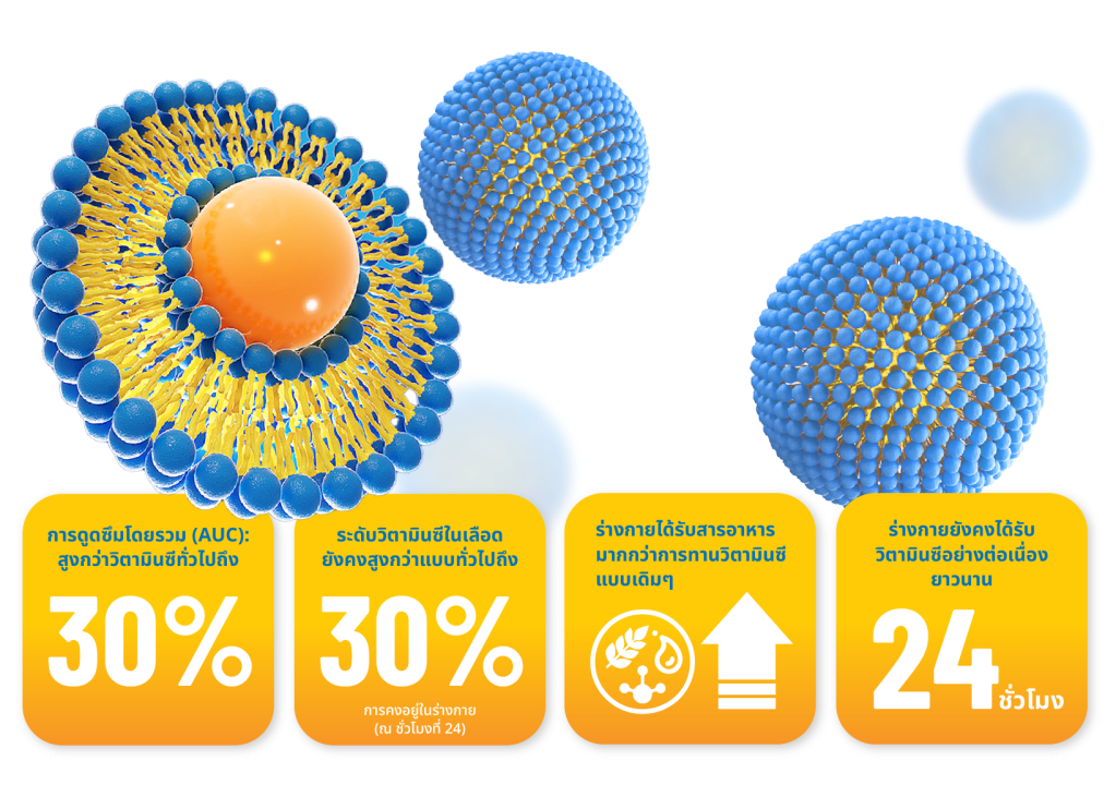Liposovit®-C คือนวัตกรรมขั้นสูงของวิตามินซี ที่ใช้ “เทคโนโลยีนาโนไลโปโซม” (Liposome Technology)